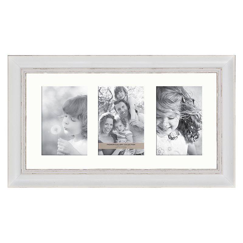 Fashion Gallery Collection 4" x 6" Distressed White 3-Opening Frame, Black